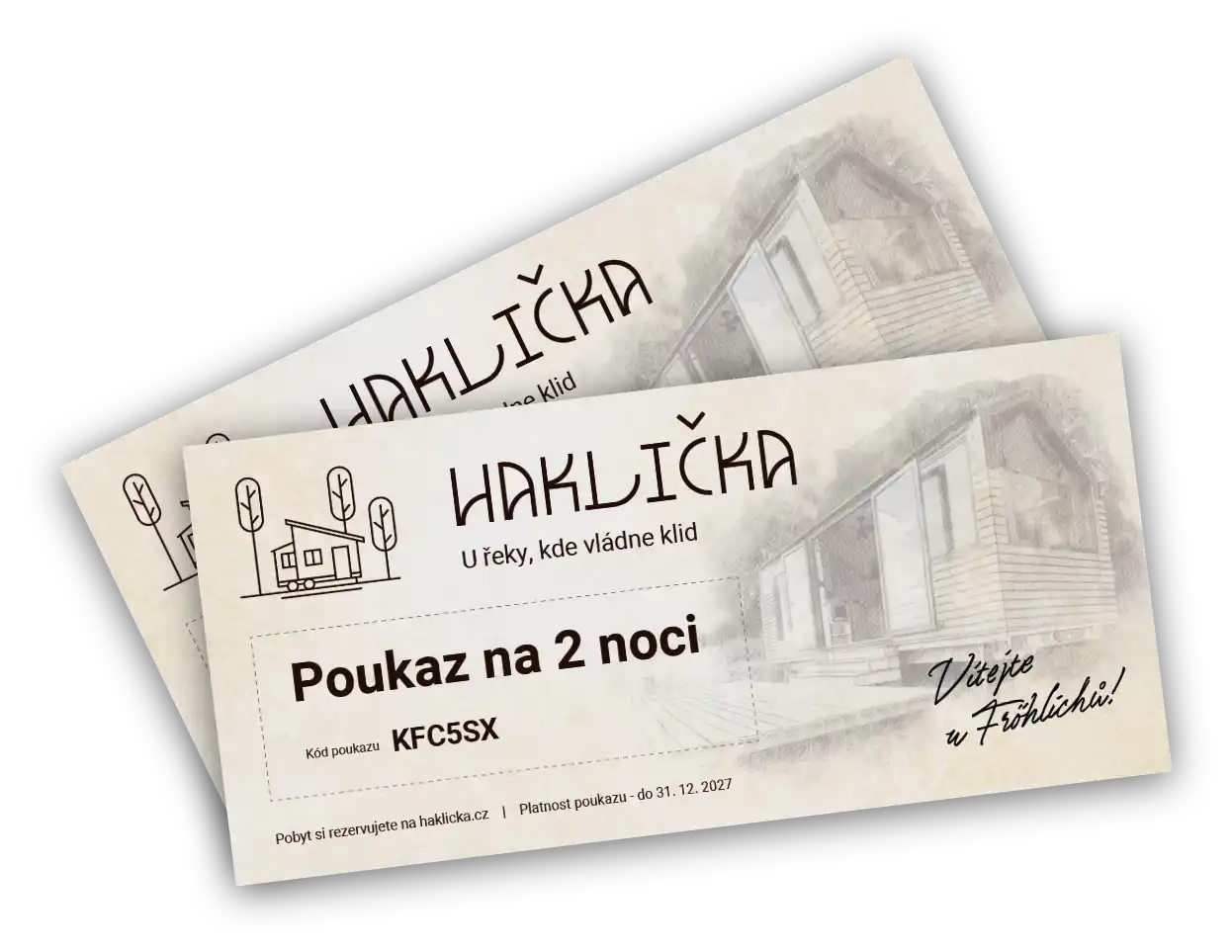 Nabízíme dárkové poukazy na pobyt v našem tinyhousu — malém útočišti u slepého ramene řeky, kde se čas zpomaluje a člověk znovu slyší vlastní dech. Poukaz můžete věnovat v libovolné hodnotě a obdarovaný si svůj pobyt vybere kdykoliv během roku. Je to dárek, který neplní poličky, ale mysl klidem: pár dní u vody, uprostřed stromů a ticha, na místě, kde se opravdu dá odpočívat.